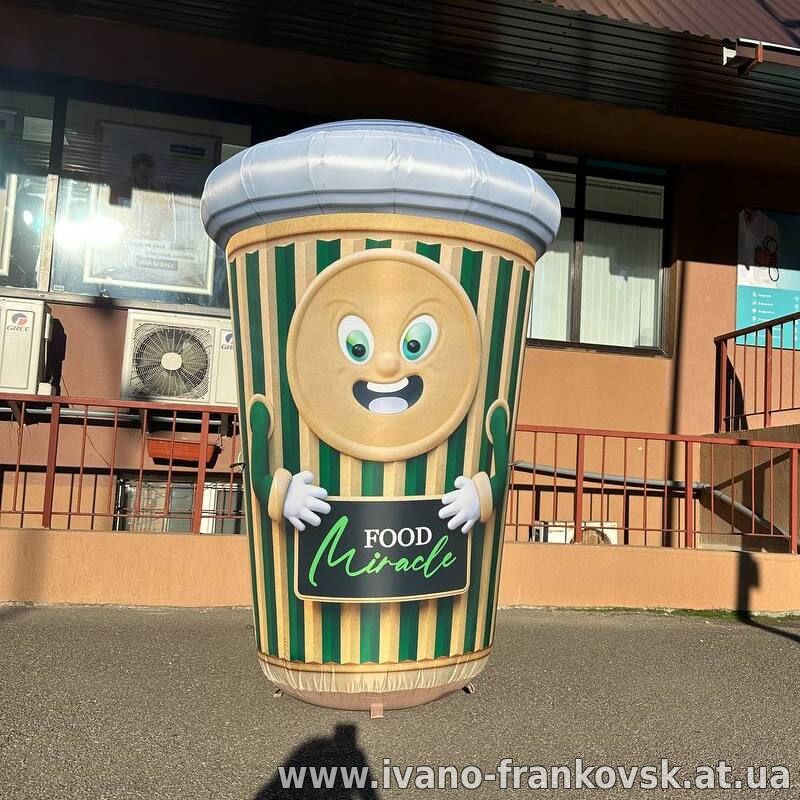 Герметичний Надувний стакан реклама з вбудованим світлодіодним освітленням - самостійний пристрій для рекламних цілей компанії, бізнесу. Реклама для вулиць на замовлення компанії Слон пошита вручну, з використанням еластичної, вогнестійкої тканини - поліуретану. Дизайнерська вулична реклама - перевірений метод для - запуску нового бренду - відкриття кав'ярні - просування товарів, послуг, меню Надувні конструкції з освітленням романтичні, в цій обстановці людина відчуває себе щасливою. Бюджетна вулична реклама надувна герметична фігура Стакан підходить для - Ресторану швидкого харчування - Кав'ярні - Автокафе - Смузі-бару - Кав'ярні типу Острівець - Піцерії Зовнішня реклама Слон витримує екстремальні погодні умови, робоча температура -45-+80ºC. Висота рекламного об'єкта 180 см. Для установки не потрібно 1. навчений персонал 2. фізична сила 3. інструмент 4. розетка електроживлення 5. техобслуговування Для запуску реклами в комплекті Надувашки в наявності інструкція, також дивіться відео на ютуб каналі Slon inflatables. +38063 410 74 60 Вайбер, Телеграм +38044 334 41 60 Наш сайт https://slon-ua.com/uk/